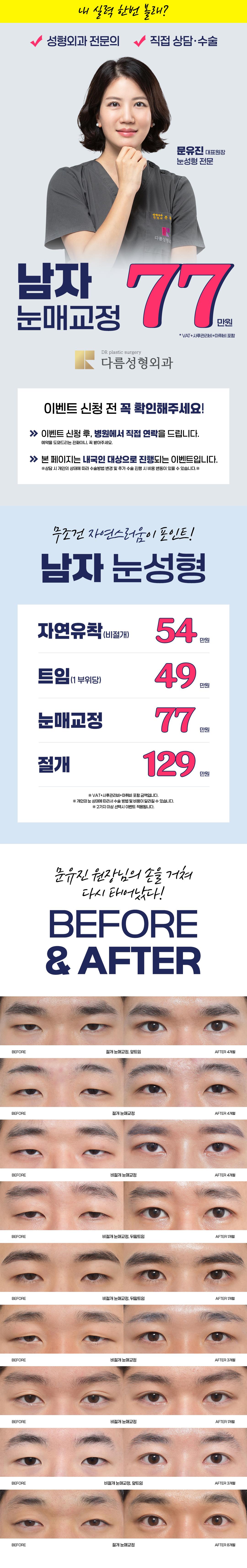 눈성형 전문, 성형외과 전문의가 직접 집도하는! 남자 눈성형