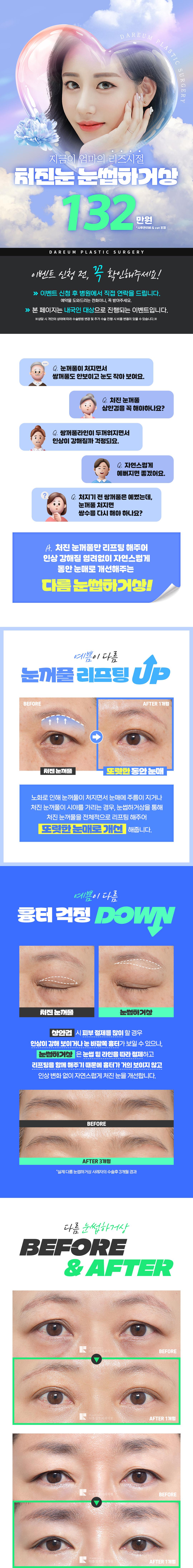 처진 눈꺼풀 자연스럽게 탄력 UP 마취비 포함.