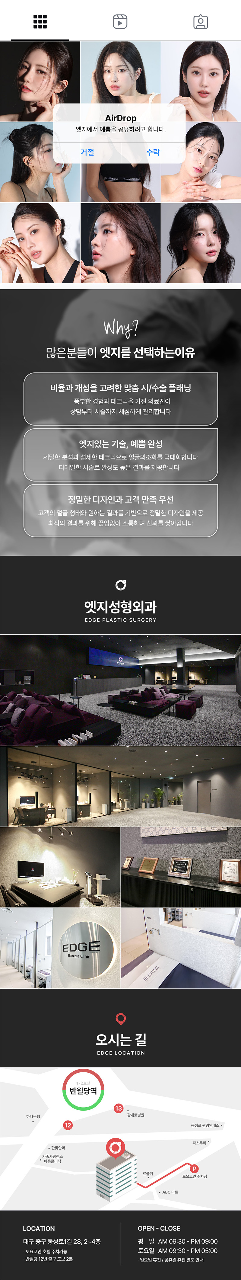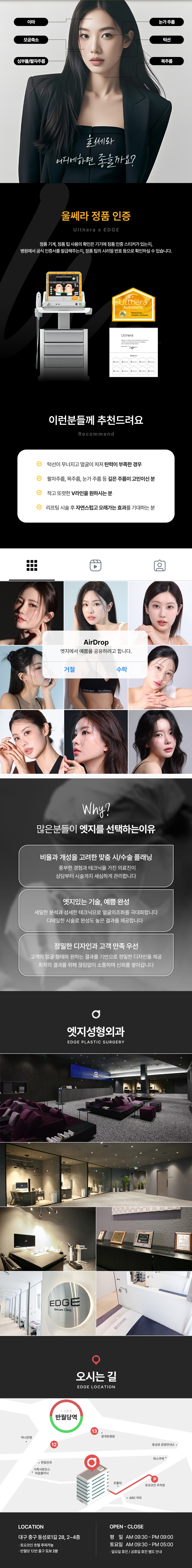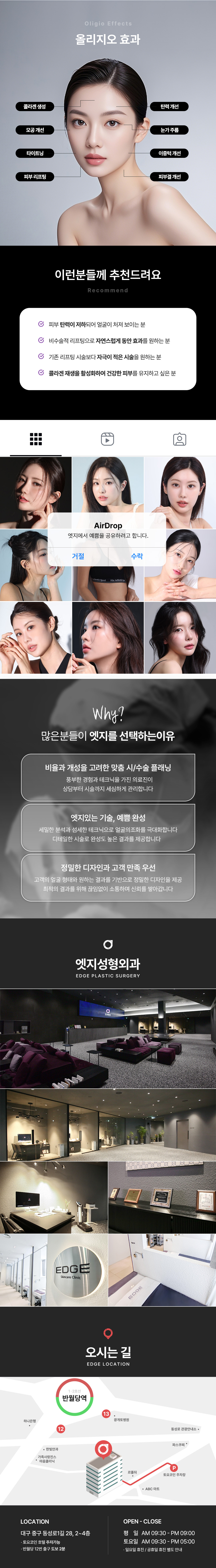 대구 성형외과 엣지입니다. 각 집중 진료 성형외과전문의 포진되어있으며 대구 동성로에 위치하여 편하게 만나보실 수 있습니다. 대구 엣지에서 리프팅, 타이트닝, 화이트닝 효과를 동시에 경험해보세요