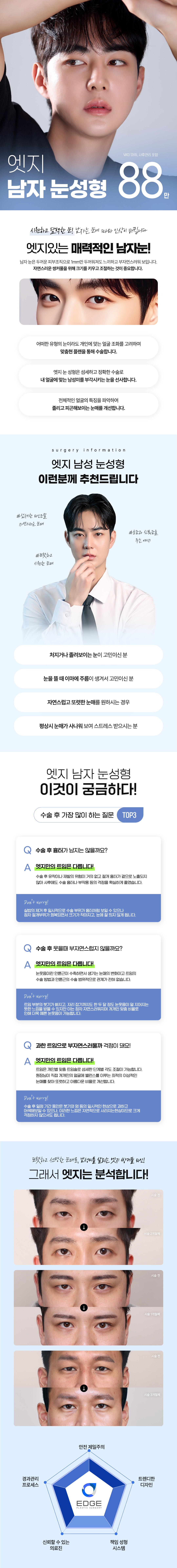시원하고 담백한눈매로 남성미를 살리는 엣지 남자 눈성형을 만나보세요