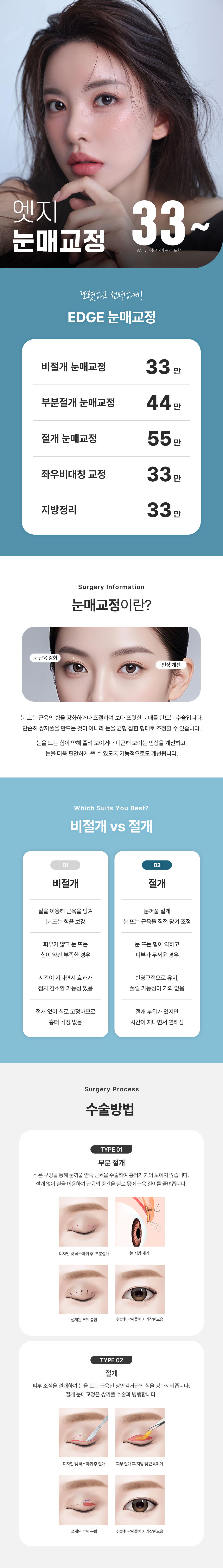 눈의 예쁨은 엣지가 담당, 트임으로 더욱 크고 반짝이는 눈매 만들어 드립니다