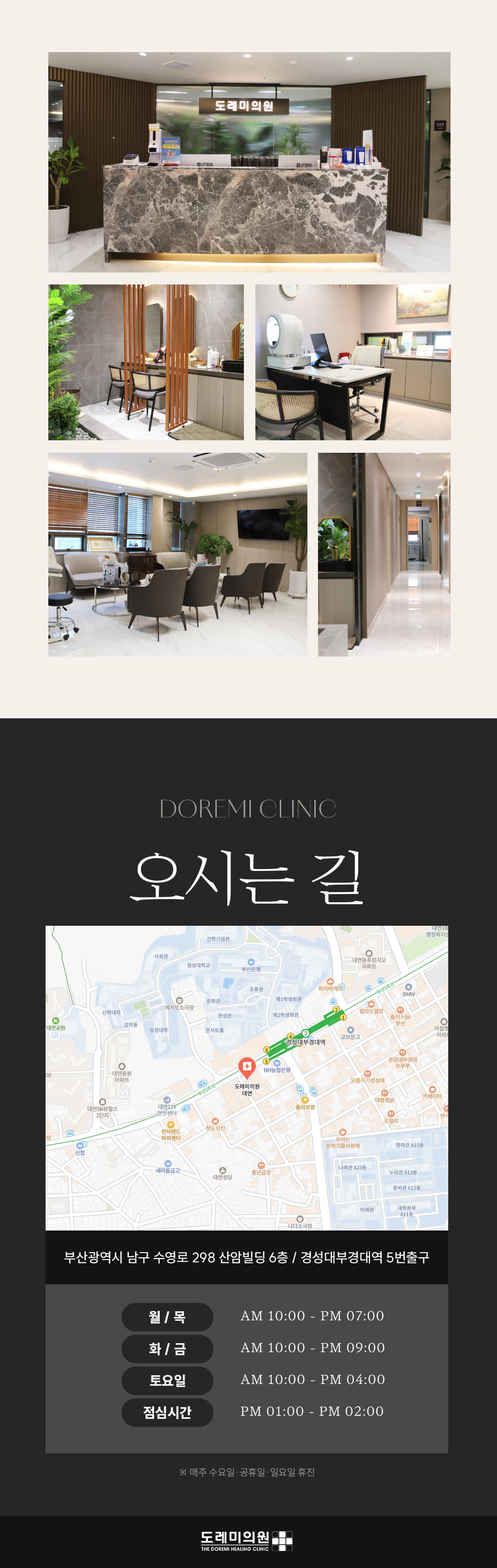 인증 1의사 & 약사 복수면허로 섬세한 처방과 피부 솔루션을 제공합니다. [피부부터 체형까지, 부산대표뷰티토탈클리닉 도레미의원]