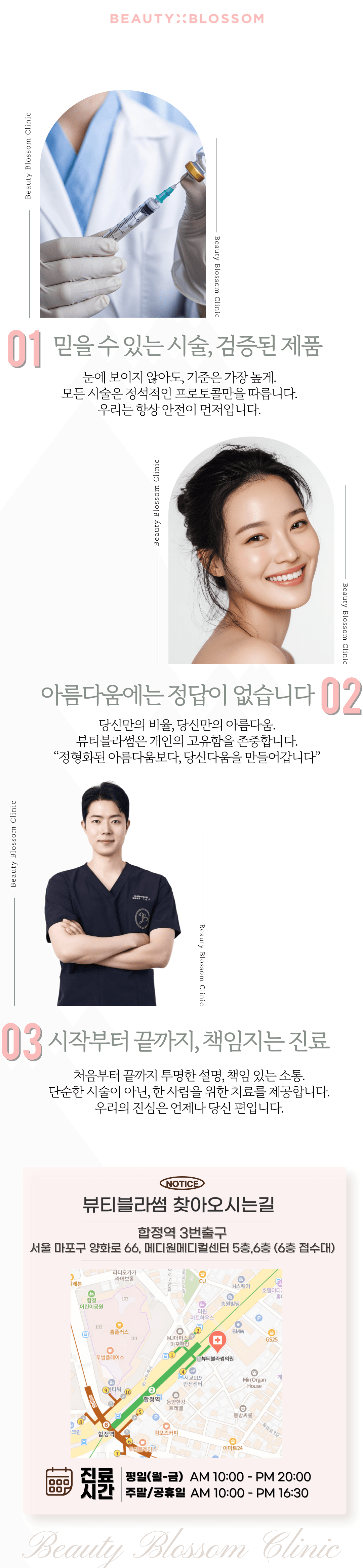 인증 6합정피부과 홍대피부과 여의사 | 영어&중국어&일본어 통역 상주 보톡스 | 필러 | 색소 | 리프팅 | 스킨부스터 | 제모 | 피부관리 | 다이어트 프리미엄 Eve V 3D 피부진단기 | 프리미엄 매트릭스 비수면 가스마취 당신의 아름다움을 꽃피우는 공간, 뷰티블라썸의원. 최상의 의료 기술과 맞춤 케어로 자연스럽고 조화로운 아름다움을 선사합니다. 당신이 가장 빛나는 순간을 위해 함께합니다.