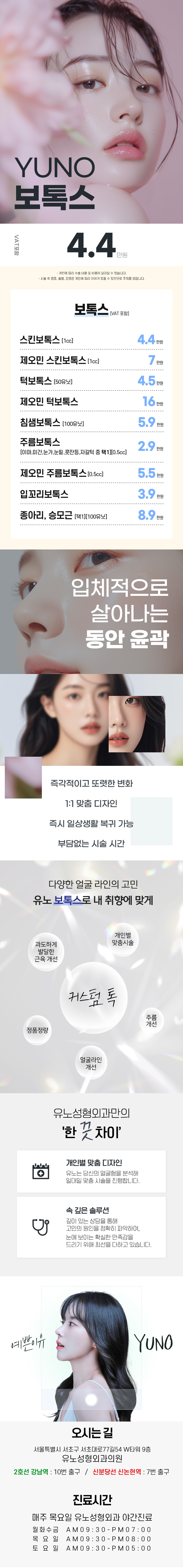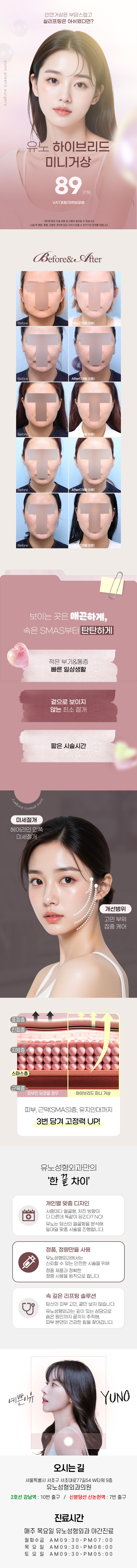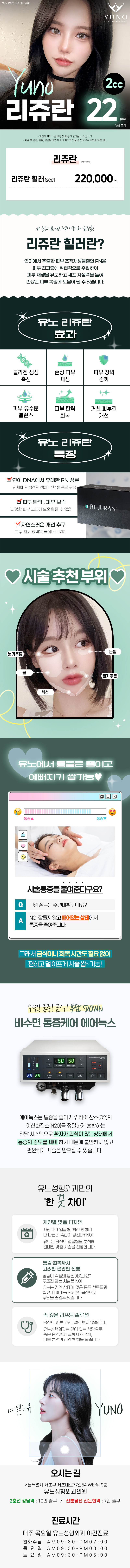 안녕하세요 유노성형외과입니다 더 많은 수술/이벤트 정보가 공식 홈페이지에 준비되어있으니 확인부탁드립니다❤️