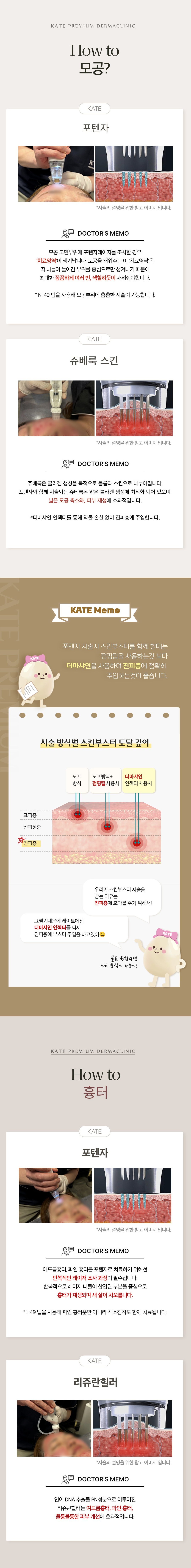 1. 정품, 정량 눈앞에서 개봉 2. 섬세한 손주사로 피부 굴곡에 맞춰 시술 3. 진정관리로 다운타임 최소화 4. 나에게 맞는 스킨부스터로 효과 상승 4. 피부장벽 회복 및 피부재생 효과