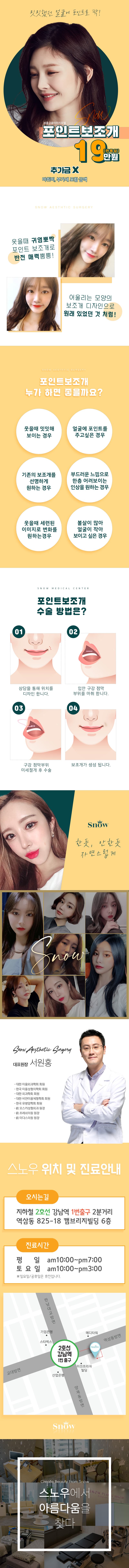 인증 7스노우는 상담부터 수술, 수술 후까지 고객들이 편안한 마음으로 진료를 받을 수 있도록 진심을 다하겠습니다. 좋은 실력과 결과를 만드는 병원이 될 것입니다. 한분 한분 최선을 다하는 마음 , 스노우의 진심입니다.